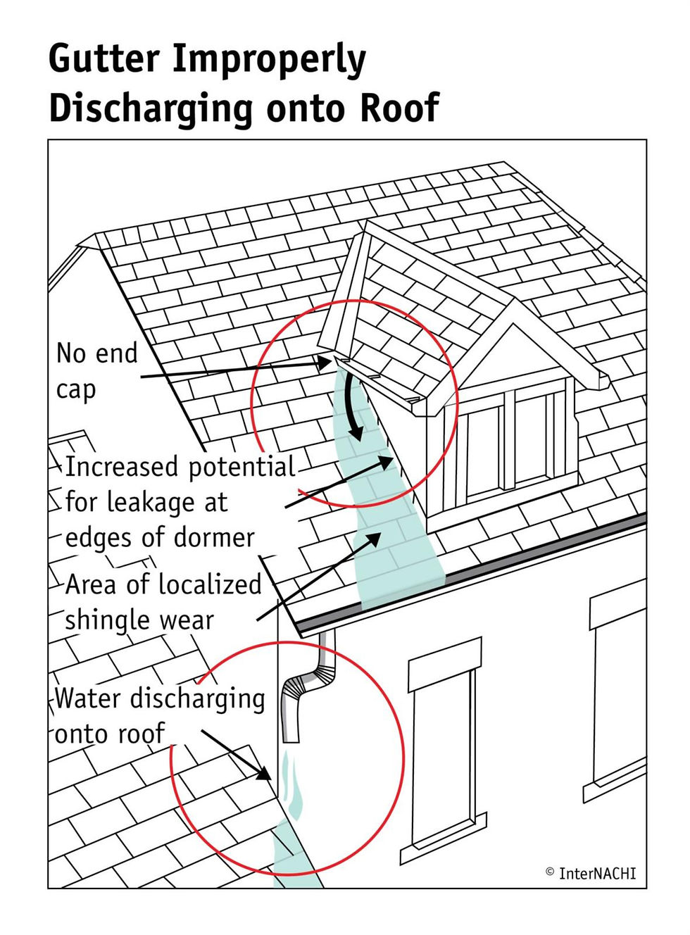 Second Story Gutter discharging directly onto the roof